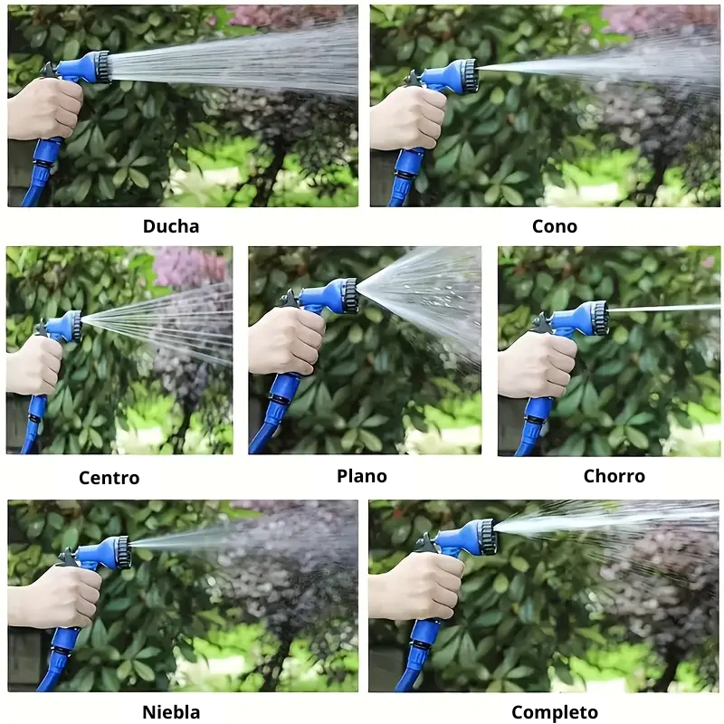 ⭐7 modos de chorro: Una boquilla versátil para regar, lavar o limpiar lo que quieras.